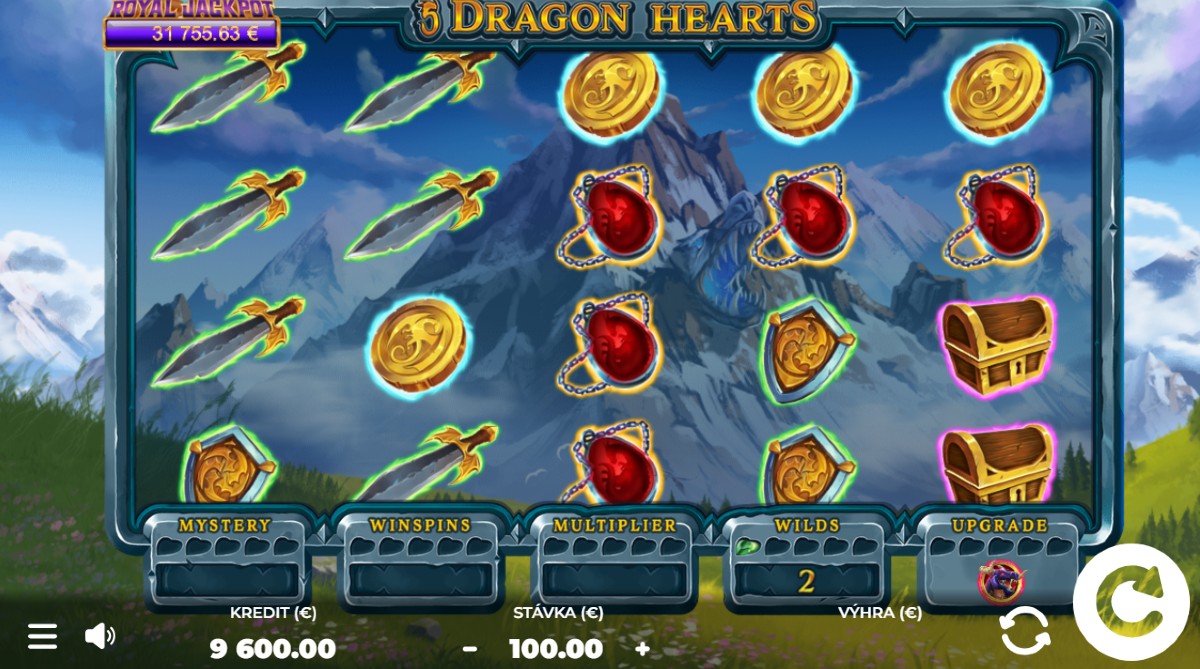 Ak ťa bavia výherné automaty s magickou tematikou, možno si už vyskúšal niečo podobné ako Firebird Double 27 alebo Midnight Fruits 81. Ale ver, tento slot hrá úplne inú ligu. Hrať 5 Dragon Hearts je totiž ako vyraziť na výpravu. Zbieraš srdcia, odomykáš bonusy a ak máš šťastie, možno ti na konci padne Royal Jackpot ako z rozprávky.